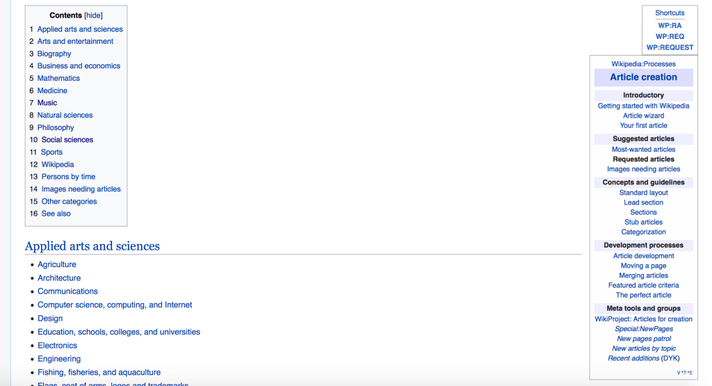 The first and most important aspect of my wikipedia post was selecting a topic to write the post about. This was much more difficult that I suspected. The topic had to be something I was educated on, something not already on wikipedia, and something that was accurate. I found a lot of trouble in finding a subject that met all these requirements. In order to find something I went on wikipedia and typed “WP:RA” into the search engine as you can see in the screenshot below. This gave me a list of different topics and entries to look at. These topics gave me a better idea of what topic I should chose to write about.
